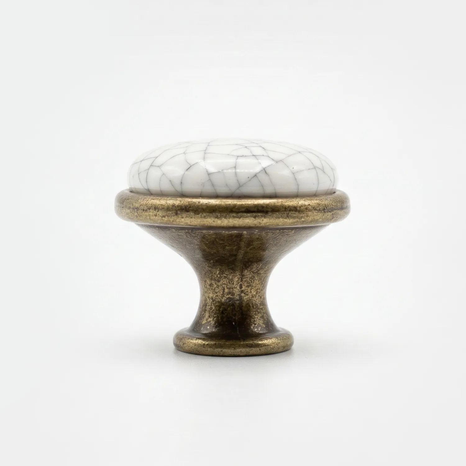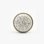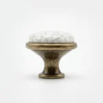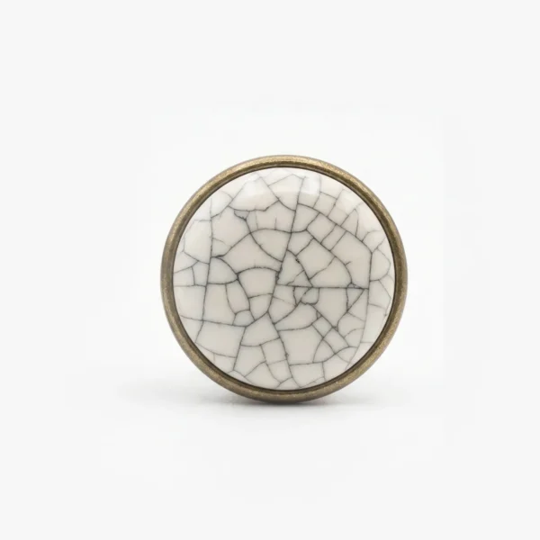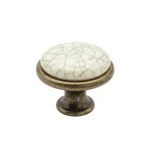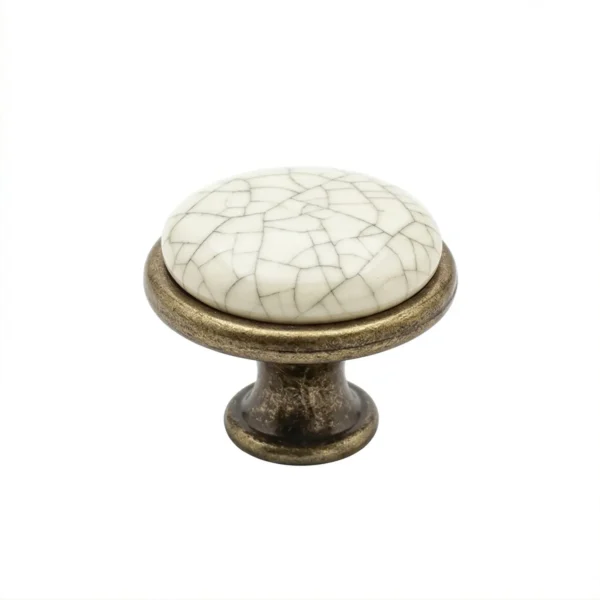 Butonul pentru mobilier GP 19-GAB-MLK-4 este o piesă deosebită ce îmbină farmecul stilului rustic cu eleganța clasică. Acest model se remarcă prin inserția centrală din porțelan alb ceramic, decorată cu un model delicat de „firicele gri” ce imită aspectul ceramică crăpată (crackled), oferind un aer vintage autentic.