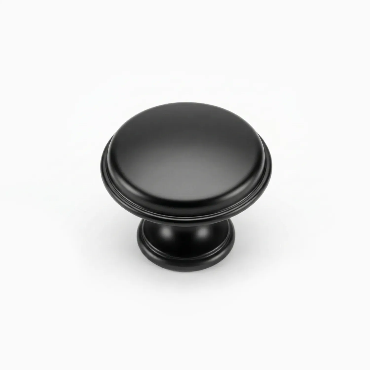 Butonul pentru mobilier din colectia CENTO, cod GZ-CENTO-1-20M, este un accesoriu discret și versatil, ideal pentru cei care caută un echilibru între estetica retro și minimalismul modern. Designul său se remarcă printr-o formă rotundă, ușor aplatizată, care oferă o suprafață tactilă plăcută și o utilizare ergonomică. Finisajul în negru mat îi conferă un caracter puternic, transformându-l într-un accent vizual sofisticat care se potrivește perfect atât pe fronturi din lemn natural, cât și pe suprafețe colorate uni, în stil industrial sau contemporan.