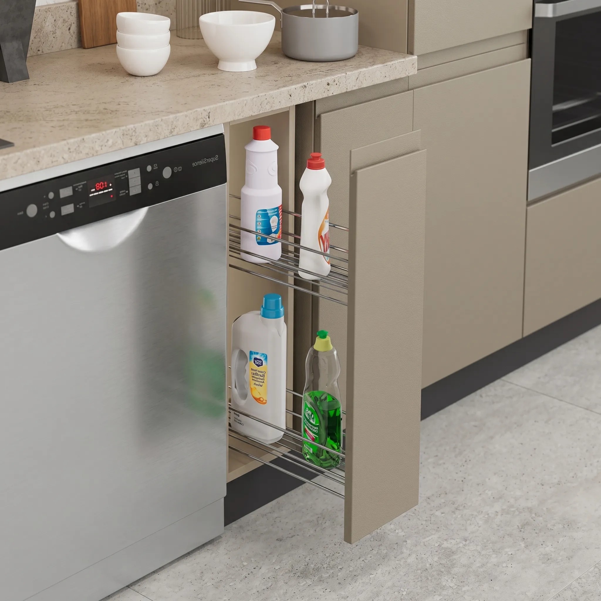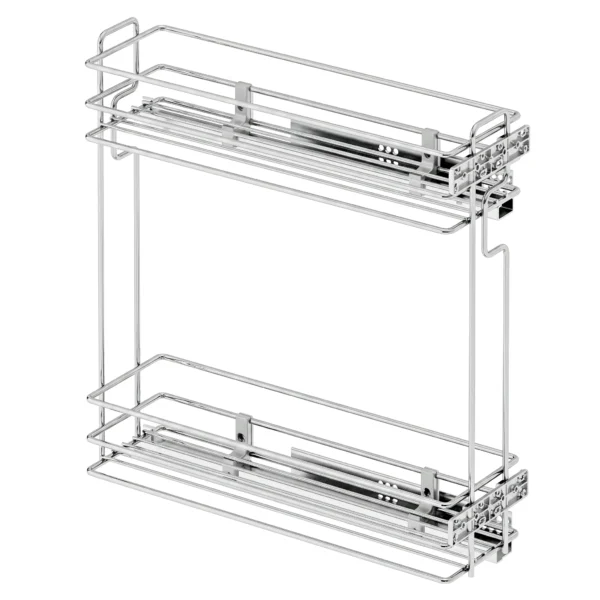 Coș Jolly STARAX S-2423-C pentru corp 200 mm este soluția ideală pentru optimizarea spațiului în bucătăriile moderne, fiind special proiectat pentru corpuri de mobilier cu lățimea de 200 mm. Acest sistem extractibil pe două niveluri oferă o organizare impecabilă pentru sticle de diverse dimensiuni, produse de curățenie sau alte accesorii culinare, transformând un spațiu îngust într-o zonă de depozitare extrem de accesibilă. Fabricat din materiale de înaltă calitate cu un finisaj cromat rezistent, coșul se montează pe partea dreaptă a cabinetului și este dotat cu glisiere silențioase cu sistem de amortizare integrat (soft-close). Această tehnologie asigură o închidere lină și fără zgomot, protejând în același timp obiectele depozitate împotriva șocurilor.