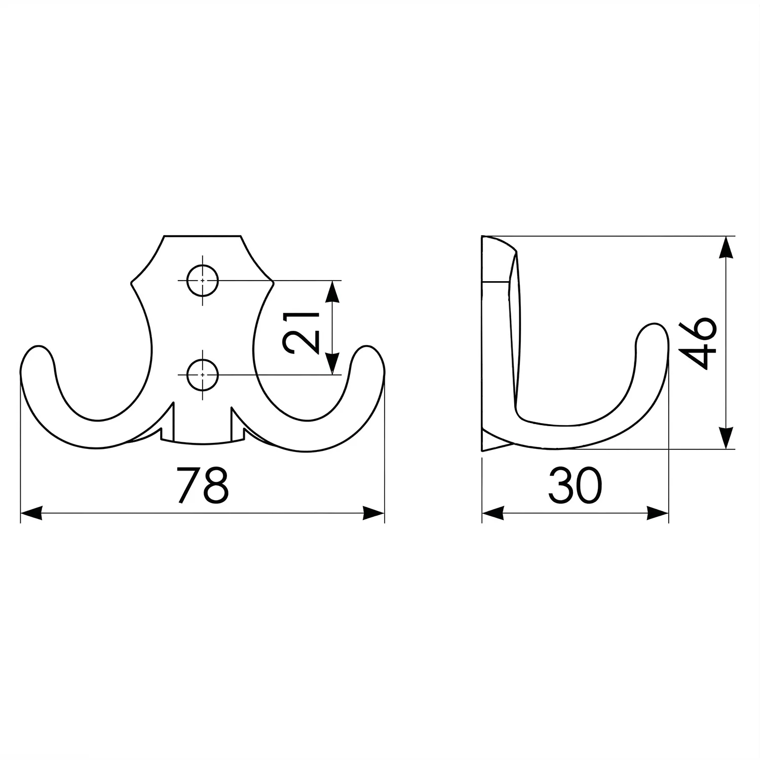 Cuierul WP 89 G4 este un accesoriu de feronerie dublu, definit prin linii curbe, fluide și o formă ergonomică. Cu o înălțime de 46 mm și o lățime de 78 mm, acest model oferă două puncte de agățare simetrice, fiind proiectat pentru o fixare stabilă și o utilizare eficientă a spațiului. Proiecția de 30 mm față de suprafața de montaj permite suspendarea facilă a obiectelor de vestimentație sau a accesoriilor. Finisajul în crom lucios asigură o suprafață reflectorizantă, oglindată, aducând un plus de luminozitate și modernitate oricărui decor interior.