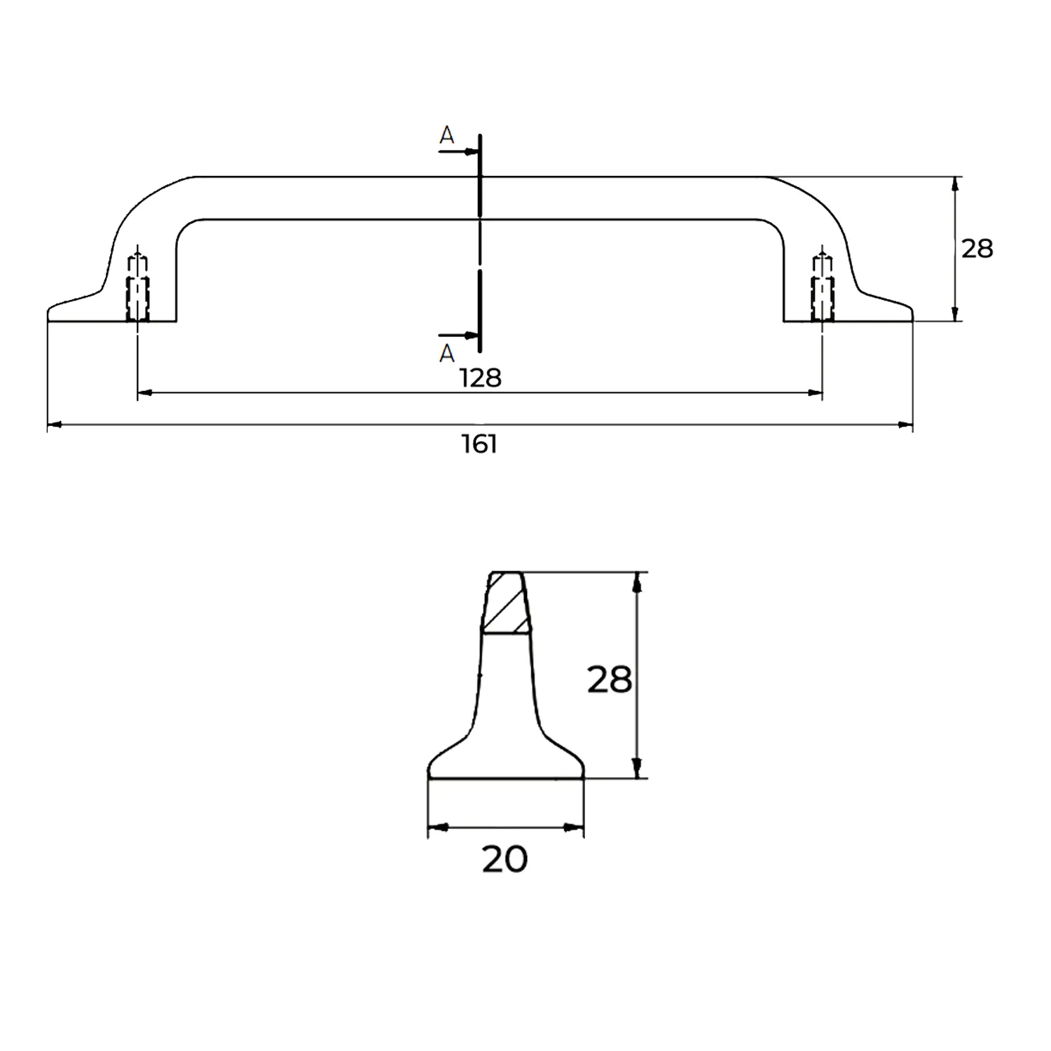 Mânerul Fabricio 128 mm este un accesoriu de feronerie cu un design modern și echilibrat, creat pentru a aduce un plus de stil mobilierului contemporan. Forma sa se remarcă prin liniile curate și picioarele de fixare elegante, care se evazează spre bază până la o lățime de 20 mm, asigurând o stabilitate vizuală sporită și o prindere ergonomică excelentă. Cu o lungime totală de 161 mm și o proiecție de 28 mm față de front, acest model este ideal pentru o gamă largă de piese de mobilier. Finisajul în aur satinat aduce un plus de eleganță și căldură, fiind o alegere sofisticată care se integrează perfect în decoruri contemporane, neoclasice sau art-deco.