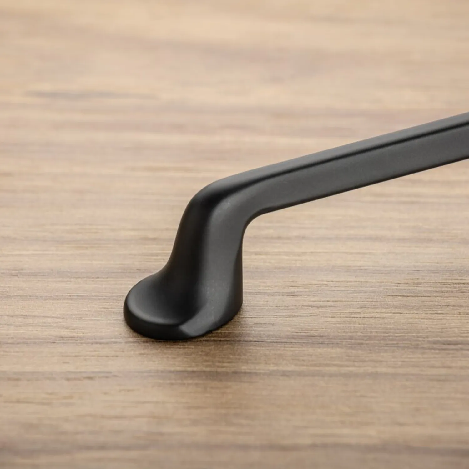 Mânerul Fabricio 128 mm este un accesoriu de feronerie cu un design modern și echilibrat, creat pentru a aduce un plus de stil mobilierului contemporan. Forma sa se remarcă prin liniile curate și picioarele de fixare elegante, care se evazează spre bază până la o lățime de 20 mm, asigurând o stabilitate vizuală sporită și o prindere ergonomică. Cu o lungime totală de 161 mm și o proiecție de 28 mm față de front, acest model oferă un echilibru perfect între estetică și funcționalitate. Finisajul negru mat adaugă o notă de rafinament și profunzime, fiind o soluție versatilă care completează perfect atât decorurile minimaliste, cât și pe cele cu accente industriale.