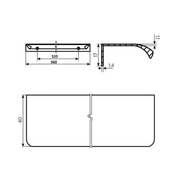 Mânerul este conceput pentru a fi montat pe marginea superioară sau laterală a frontului, asigurând o linie vizuală continuă și curată, fără a fragmenta designul fațadei. Cu o lungime totală de 360 mm și o distanță între găuri de 320 mm, acest mâner este ideal pentru bucătăriile contemporane, dressing-uri sau mobilier de baie, oferind o prindere ergonomică și o durabilitate excelentă în utilizarea cotidiană.