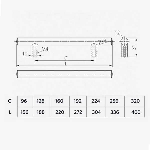 Structura sa tip „reling” permite o prindere ergonomică și sigură, în timp ce capetele bării ce depășesc picioarele de fixare oferă un echilibru vizual plăcut pe fronturile de mari dimensiuni. Cu o distanță între găuri de 256 mm și o lungime totală de 336 mm, acest mâner este alegerea ideală pentru mobilierul de bucătărie sau living care necesită un accent rafinat, fiind potrivit atât pentru stiluri de amenajare clasice, cât și industriale sau rustice.