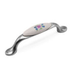 Cu o distanță între găurile de montaj de 96 mm și o formă ergonomică arcuită, acest mâner asigură o priză confortabilă și o estetică nobilă. Finisajul metalic în nichel patinat (argintiu antichizat) adaugă o notă de distincție rece, fiind alegerea ideală pentru mobilierul în stil rustic, provensal sau shabby chic, unde se dorește un echilibru între elemente florale și texturi metalice patinate.