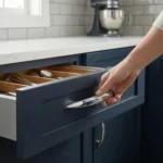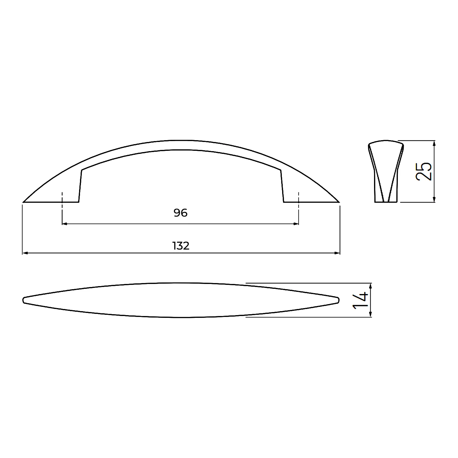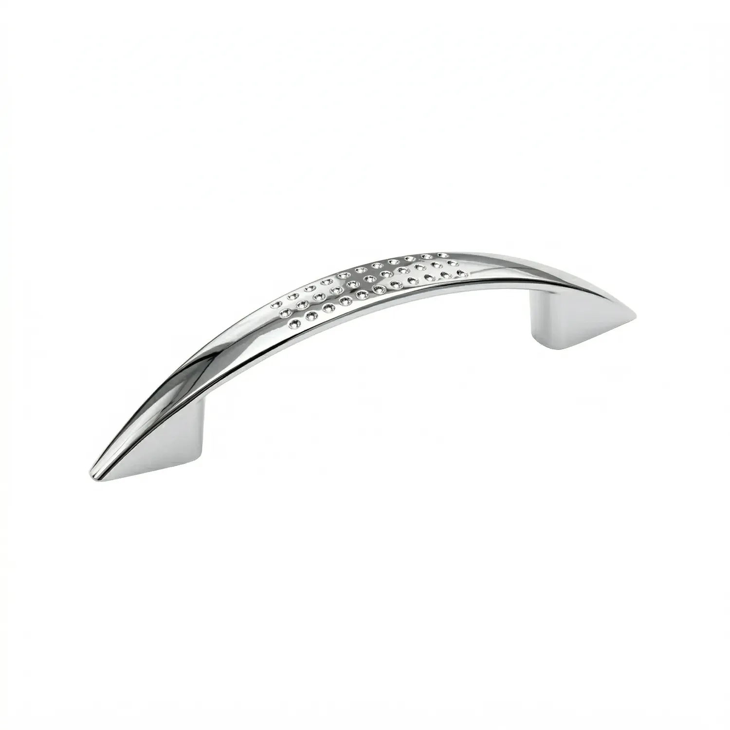 Mânerul UZ-05-096 este un element de feronerie cu un design modern și minimalist, caracterizat prin linii fluide și o formă arcuită ergonomică. Fabricat din materiale de înaltă calitate, acesta prezintă un finisaj cromat lucios care reflectă lumina, aducând un plus de strălucire și eleganță oricărui spațiu. Detaliul estetic central, format dintr-o serie de puncte embosate pe partea superioară, nu doar adaugă un accent vizual interesant, dar oferă și o textură tactilă plăcută. Cu o lungime totală de 132 mm și picioare de fixare discrete ce se îngustează spre baza mobilierului, acest mâner este ideal pentru fronturile de bucătărie, baie sau mobilier de living, oferind un aspect curat, modern și rafinat.