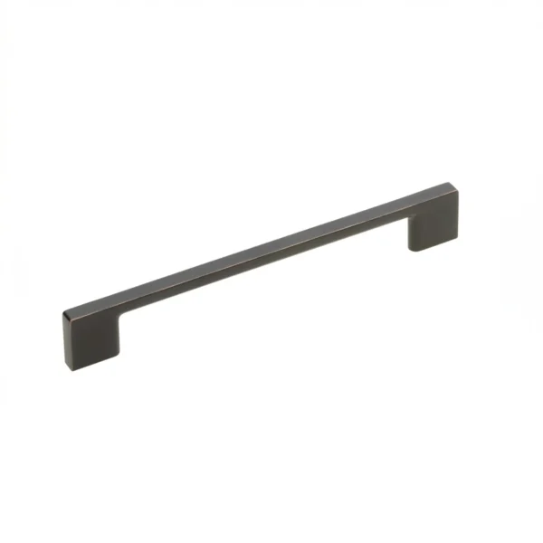 Mânerul UZ-819160-14 se distinge printr-un profil ultra-subțire și o estetică liniară riguroasă, fiind conceput pentru a oferi o notă de eleganță minimalistă fronturilor de mobilier de dimensiuni standard. Fabricat dintr-un aliaj metalic de înaltă densitate, acesta prezintă un finisaj de bronz șlefuit, o nuanță caldă și sofisticată care aduce un farmec atemporal și un caracter premium mobilierului contemporan.