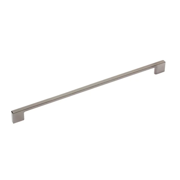 Mânerul UZ-819256-12 se distinge printr-un profil ultra-subțire și o estetică liniară riguroasă, fiind conceput pentru a oferi o notă de eleganță minimalistă fronturilor de dimensiuni medii și mari. Fabricat dintr-un aliaj metalic de înaltă densitate, acesta prezintă un finisaj negru cromat spectaculos, care combină profunzimea nuanței închise cu o strălucire metalică rafinată, oferind un aspect hi-tech și luxos.