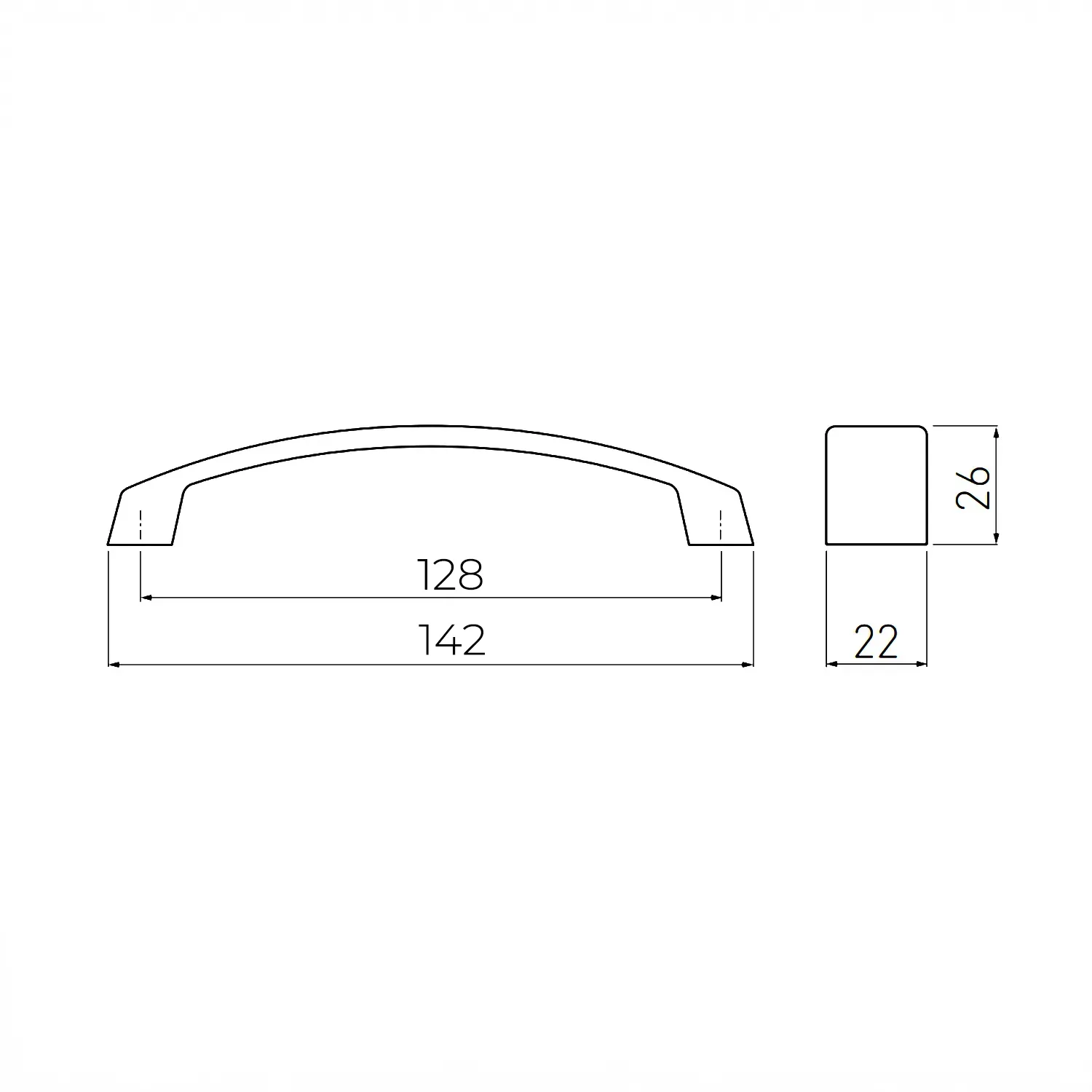 Curbura lină a mânerului nu doar că facilitează o prindere naturală și sigură, dar adaugă și o dinamică vizuală elegantă, spărgând monotonia liniilor drepte ale corpurilor de mobilier. Cu o lungime totală de 142 mm și o lățime a profilului de 22 mm, acest model este alegerea ideală pentru bucătării moderne, băi sau piese de mobilier compacte unde designul funcțional se întâlnește cu un impact estetic luminos și rafinat.