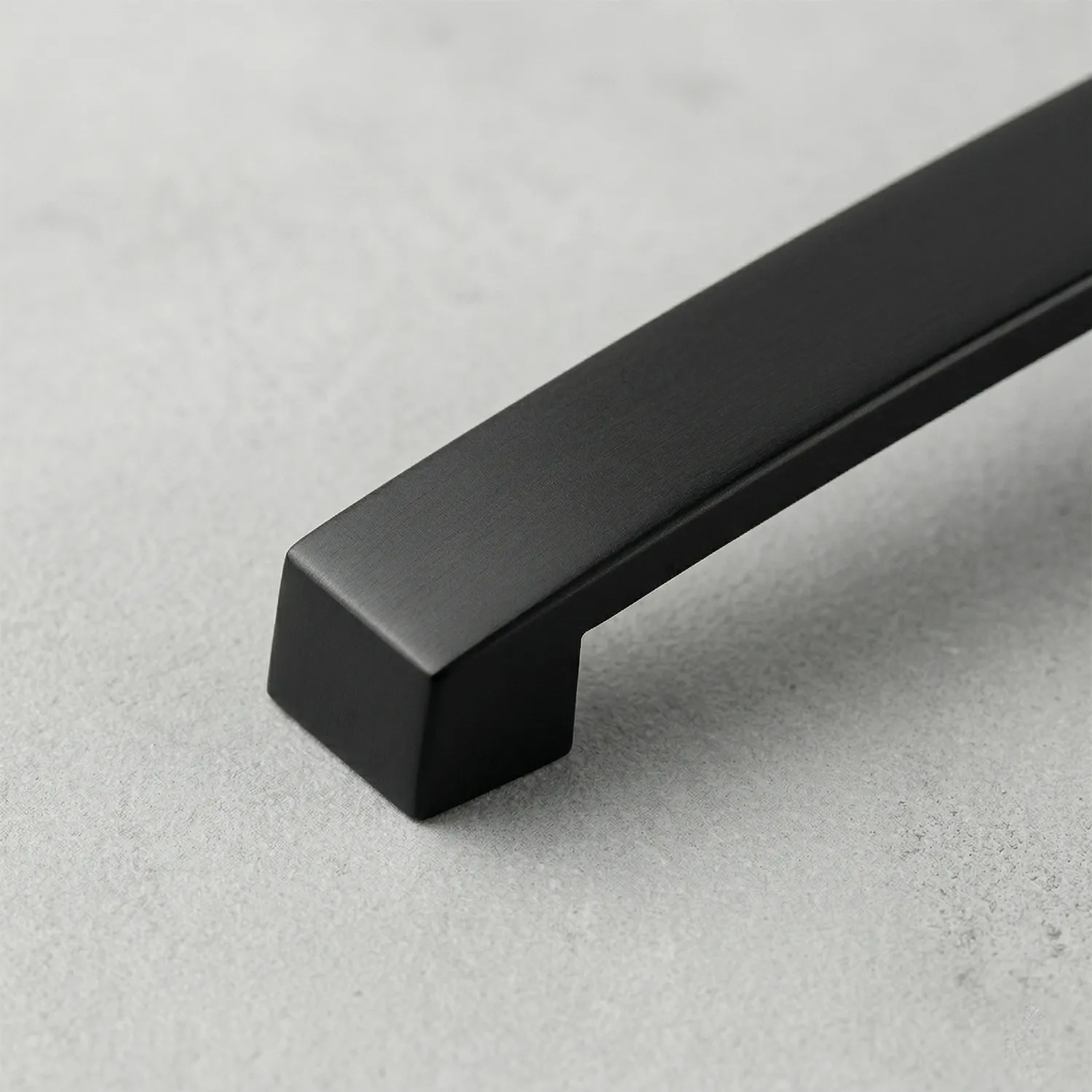 Mânerul UZ-G1-128-20M impresionează printr-o formă arcuită, suplă și un profil rectangular bine definit, fiind o piesă de feronerie ce pune accent pe o ergonomie superioară pentru fronturile de dimensiuni mici și medii. Fabricat dintr-un aliaj metalic durabil, acesta dispune de un finisaj negru mat profund, care conferă mobilierului un aspect sobru, modern și extrem de sofisticat.