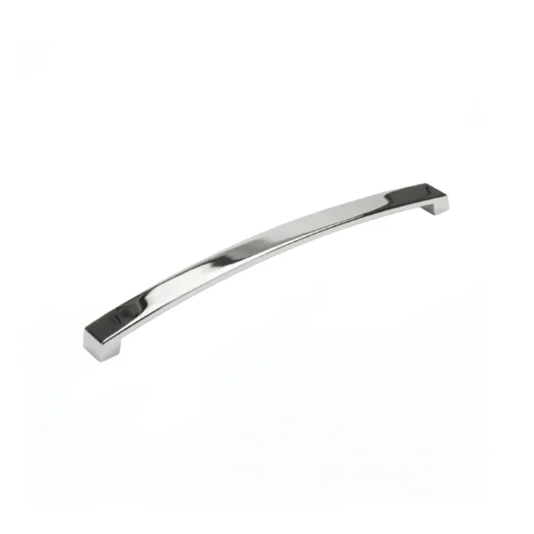 Mânerul UZ-G1-192-01 impresionează printr-o formă arcuită, suplă și un profil rectangular bine definit, fiind o piesă de feronerie ce pune accent pe o ergonomie superioară pentru fronturile de dimensiuni standard. Fabricat dintr-un aliaj metalic durabil, acesta dispune de un finisaj cromat lucios de înaltă calitate, care reflectă lumina și adaugă o notă de strălucire luxoasă mobilierului contemporan.