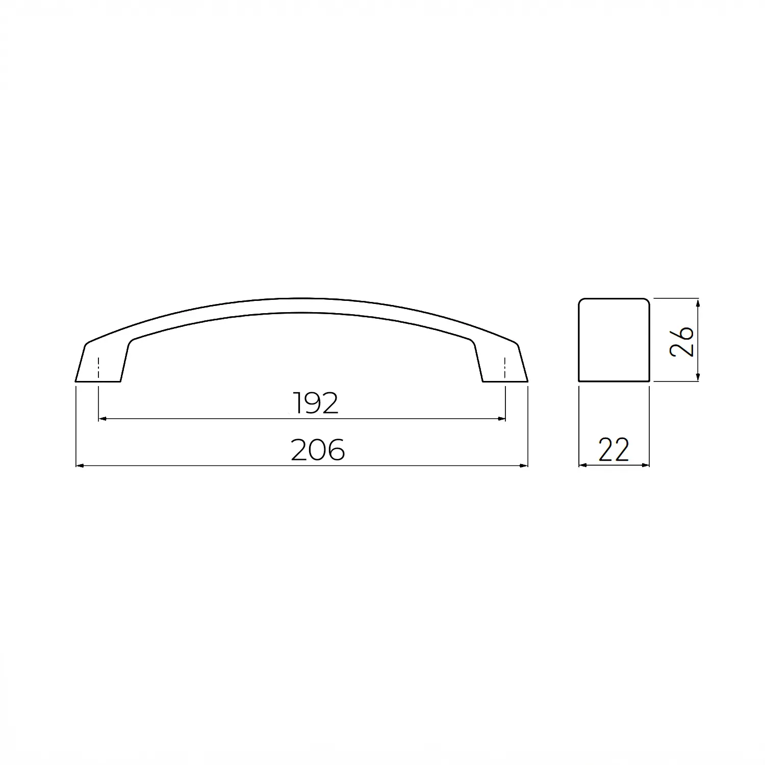 Curbura lină a mânerului nu doar că facilitează o prindere naturală și sigură, dar adaugă și o dinamică vizuală elegantă, spărgând monotonia liniilor drepte ale corpurilor de mobilier. Cu o lungime totală de 206 mm și o lățime a profilului de 22 mm, acest model este alegerea ideală pentru bucătării moderne, băi sau spații office unde designul funcțional se întâlnește cu un impact estetic luminos și rafinat.