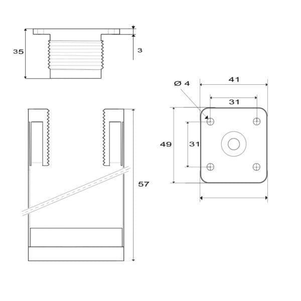 Picior patrat 40×40 / 60 mm aluminiu 10014110200