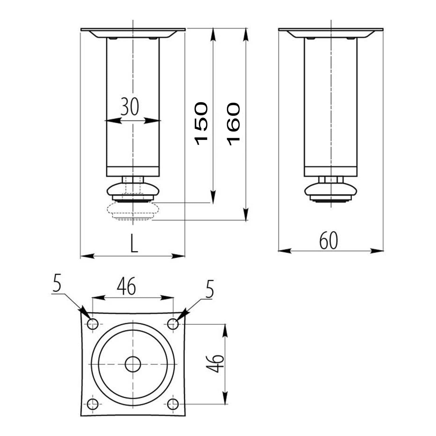 Picior rotund ø30 / 100 mm crom NM-BD-100-01