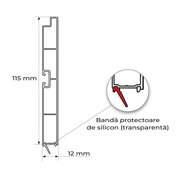 Plintă din pvc cu folie din aluminiu crom periată. Se foloseste pentru acoperirea părți inferioare a mobilierului.