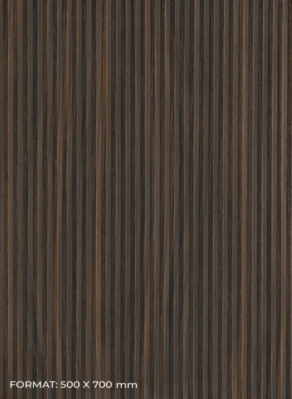Textura sa distinctivă, aplicată pe un suport de PAL melaminat pune în evidență dungi paralele care alternează finisaje lucioase cu cele mate, oferind un contrast vizual și tactil deosebit. Aceste subtile diferențe de textură îmbogățesc materialul, adăugând un strat de complexitate și rafinament.