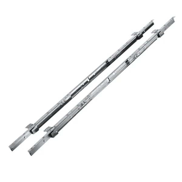 Șină masă extensibilă cu sincronizare 1000 mm, acest mecanism metalic profesional pentru optimizarea spațiului în locuință, oferind flexibilitate și funcționalitate superioară pentru mesele extensibile. Sistemul permite extinderea rapidă și eficientă prin tragerea unei singure părți, declanșând automat deschiderea segmentului opus prin mecanismul de sincronizare cu cablu.