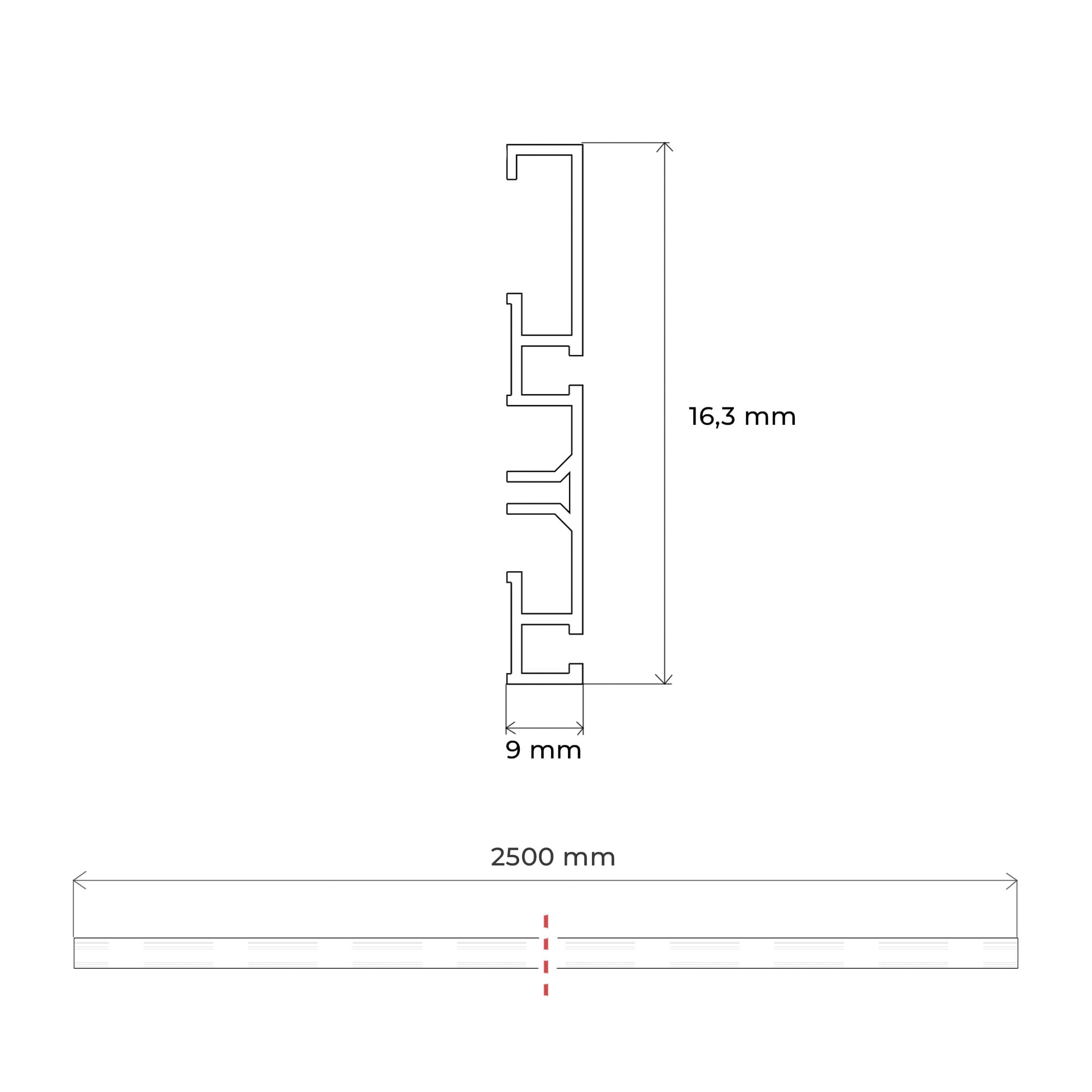 Profilul de ghidare pe 2 șine, cu o lungime de 2500 mm, se montează prin înșurubare sau lipire, oferind o soluție practică și elegantă pentru mobilier. Este ideal pentru uși glisante de dimensiuni medii, asigurând o alunecare lină și silențioasă.