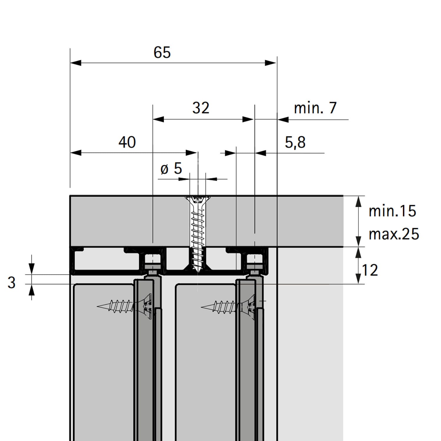 • Este necesară montarea a două profile de ghidare pentru dulapuri cu 2 sau 3 uși