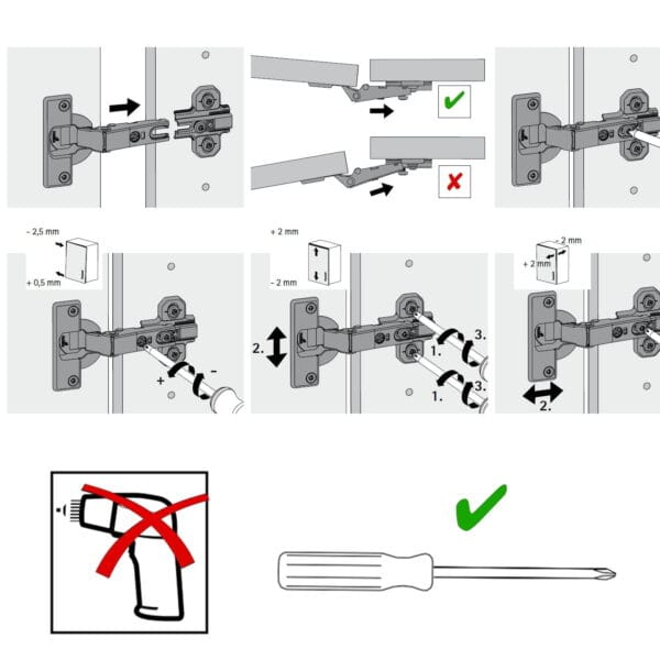 • Plăcuțe de montaj în cruce cu reglaj pe înălțime prin șurub excentric