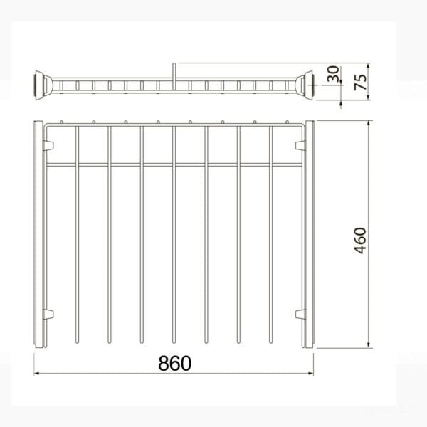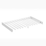 Suportul pentru pantaloni, cu lățimea de 900 mm, este destinat sistemelor de organizare a hainelor și are un finisaj alb elegant. Acesta nu necesită ghidaje suplimentare, fiind ideal pentru instalațiile modulare, aducând un aspect modern și practic. Este perfect pentru a organiza și depozita pantaloni în dulapuri sau sisteme de mobilier pentru haine.
