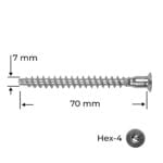 Eurosurub de cuplare, pentru pal, cu cap inecat, din otel, zincat alb. Surub Hehagonal. HEX 4