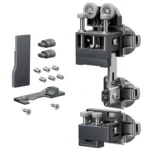 • Setul conține toate componentele de montaj pentru o ușă pliantă cu 2 segmente, cuprinzând componentele de rulare cu balama dublă, componentele de ghidare cu montaj pe panoul inferior, capac de acoperire și material de fixare